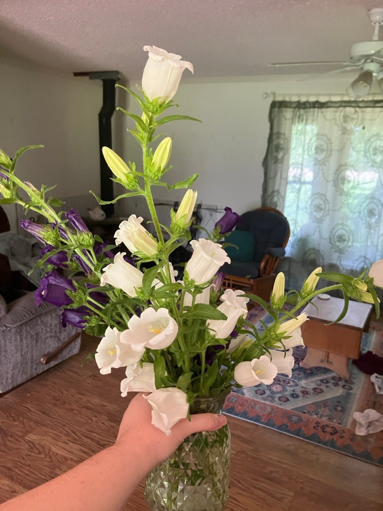 Speaking of flowers, it’s farmers market time. This year I got a unique bunch from Aunt B Blossom’s in Ottawa, KS. I can’t remember what they’re called. Do you recognize them?