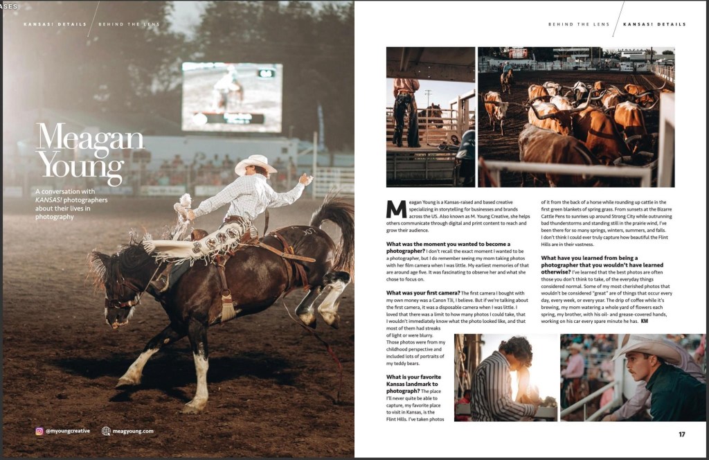 Now she is featured in Kansas! Magazine as a rodeo photographer and enthusiast!
